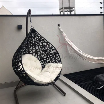 Construído com fibra sintética de alta qualidade e estrutura de aço galvanizado, o balanço Gota oferece resistência contra sol, chuva e umidade, mantendo sua beleza e conforto por muito mais tempo. É a escolha ideal para quem quer aproveitar a área externa sem preocupações com manutenção constante.