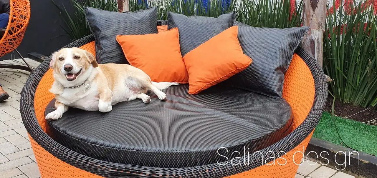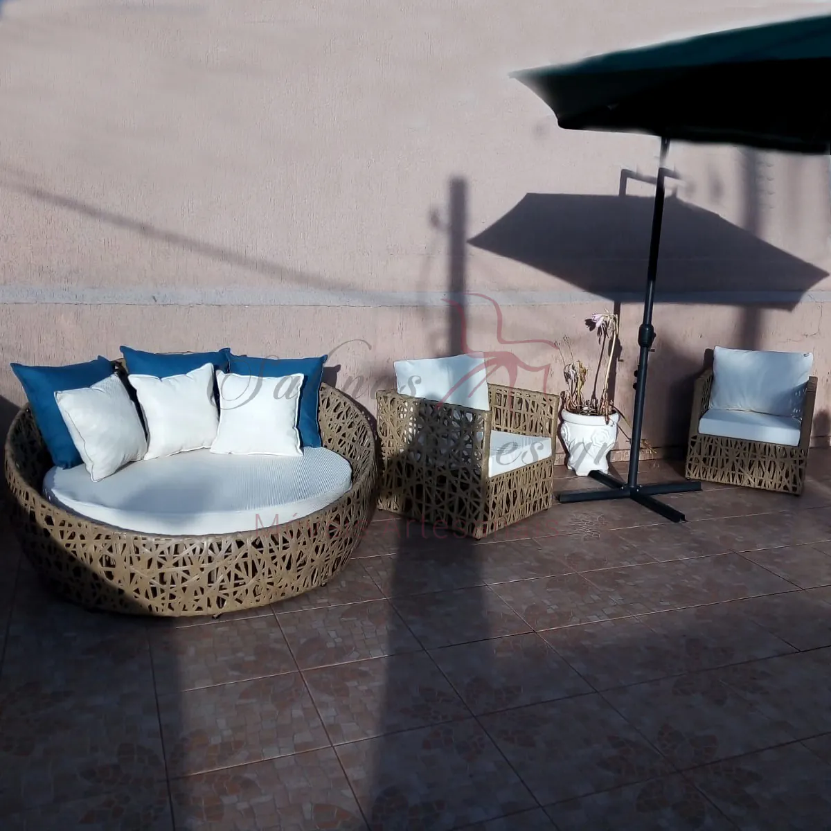 A fibra sintética utilizada oferece alta estabilidade de cor, facilidade de manutenção e resistência às variações climáticas, tornando o móvel ideal para espaços externos, como varandas, piscinas e áreas gourmet, além de ambientes internos como lounges, salas de estar e espaços de recepção.