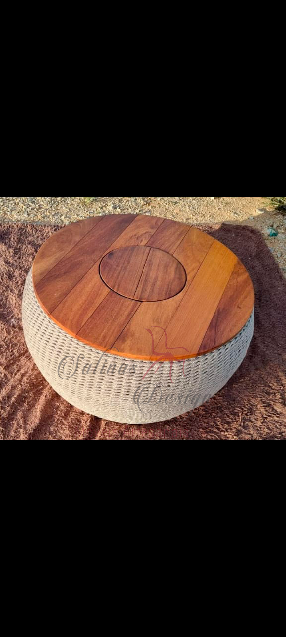 O revestimento em corda náutica é trançado manualmente por profissionais especializados, garantindo longa vida útil, estabilidade de cor e resistência a sol, chuva, maresia e variações climáticas.