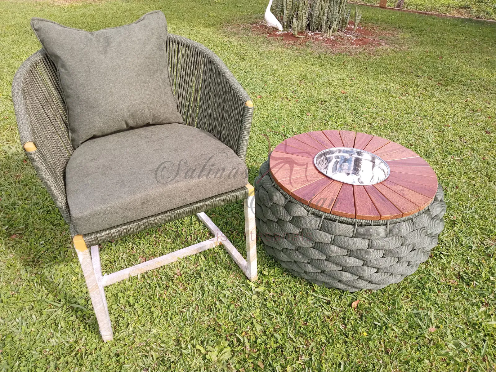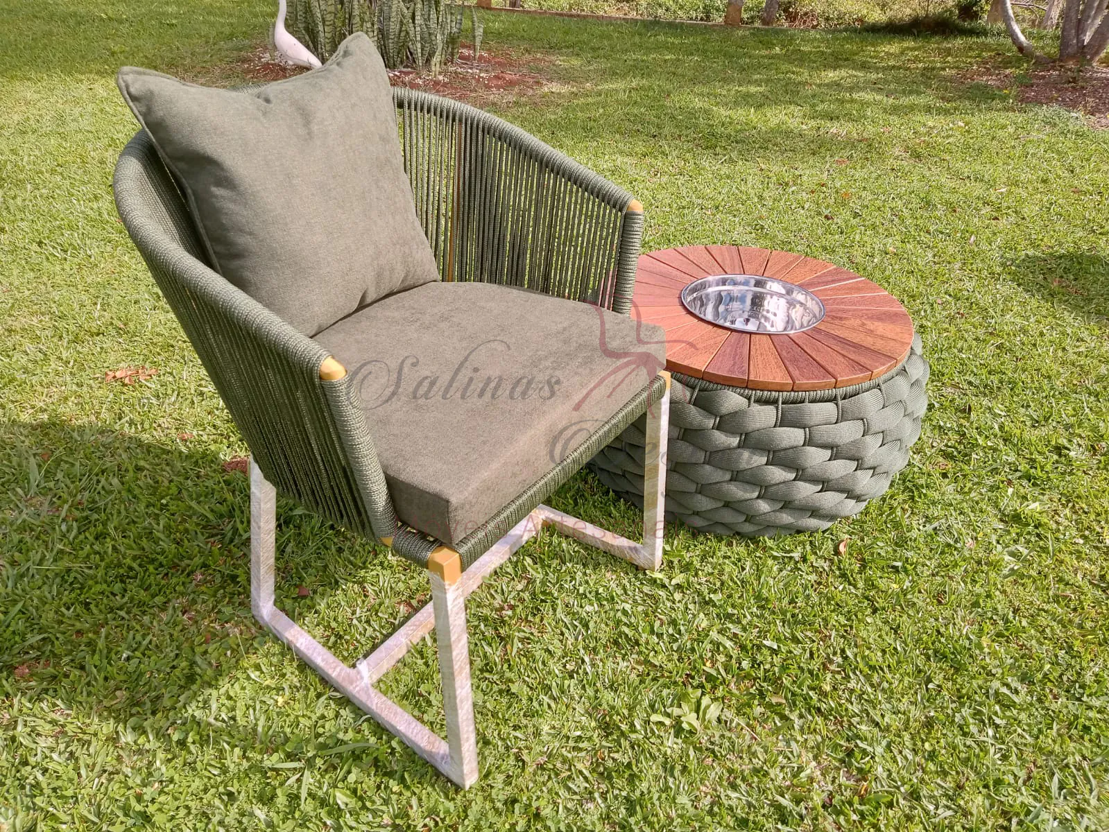 Na Salinas Móveis Design, cada cliente encontra exclusividade. Por isso, sua mesa champanheira pode ser personalizada em diferentes cores de corda náutica e acabamentos. Assim, você garante que o móvel combine perfeitamente com sua sala, varanda ou espaço gourmet.
